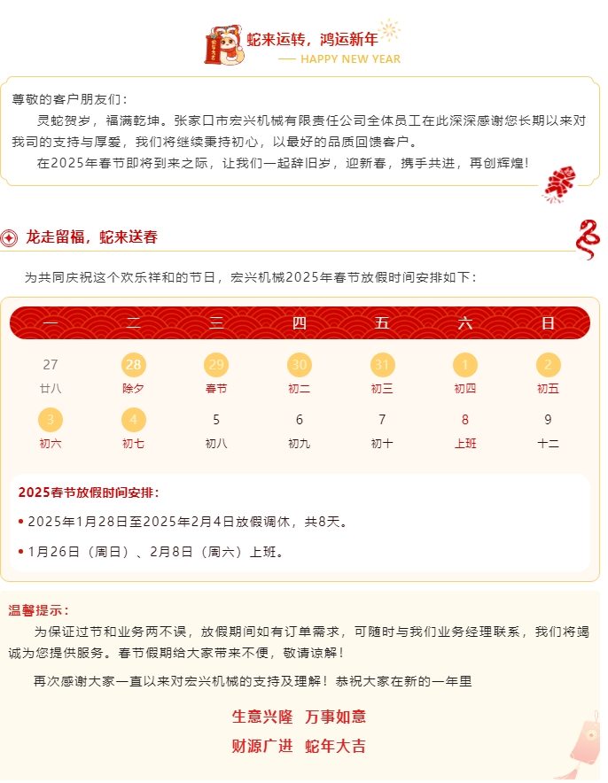 靈蛇賀歲|宏興機械2025年春節(jié)放假通知
